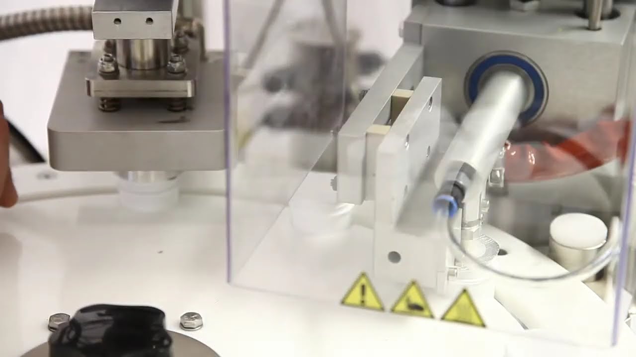 Utilizzato per posa automatica di foil termosaldabili su contenitori in materiale plastico e vetro. Una prima stazione preleva il foil da un magazzino posandolo in automatico sul contenitore ed effettuando la saldatura su due punti. In una stazione successiva il foil viene definitivamente saldata, sigillando il contenitore.